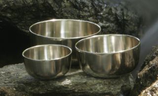 Kleine Klangschalen (Durchmesser 7cm bis ca. 25cm) werden bevorzugt gegossen und zeichnen sich besonders durch ihre perfekte und glänzende Form und ihren hellen, klaren und brillanten Ton aus. Sie sind entweder flach oder in hochgegossener Form erhältlich. Es gibt auch solche, die eingeschwärzt und obendrein mit dem bekanntesten tibetischen Mantra OM MANI PADME HUM versehen sind.