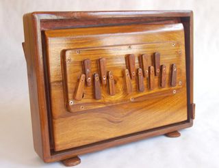 Beim Spiel wird mit der Hand Luft durch den Kasten gepumpt. Der gewünschte Ton, dessen Klappe geöffnet wird, erklingt als Dauerton.